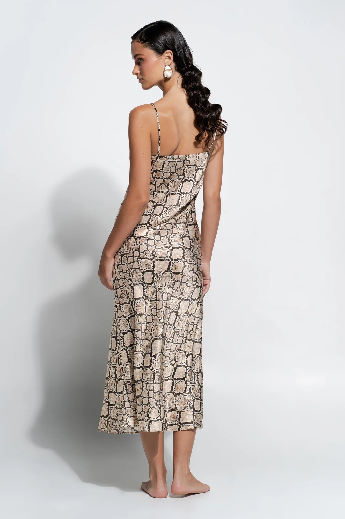 Reflecting the timeless style of the GINIA woman, the Silk Slip in Python Print is a timeless midi dress that is ideal for layering under sheer outfits, sleepwear, or wearing alone. Bias-cut in 100% silk that falls to create a beautiful silhouette. Spaghetti straps from the same silk are adjustable for a perfect fit. A style that effortlessly transitions between sleep and street.