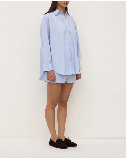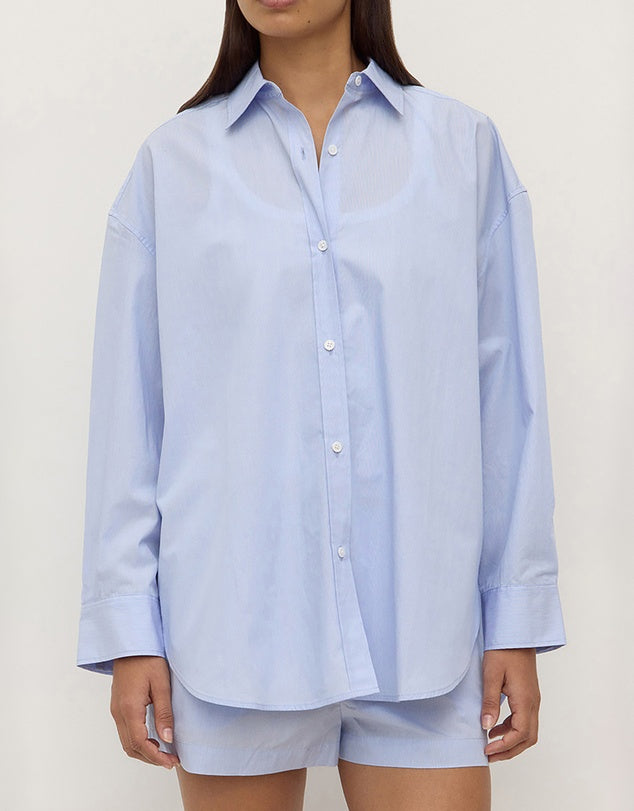 The Havana Stripe Poplin Shirt in blue/white stripe is a 100% cotton long sleeve shirt with a two-piece collar and double button cuffs with sleeve placket.