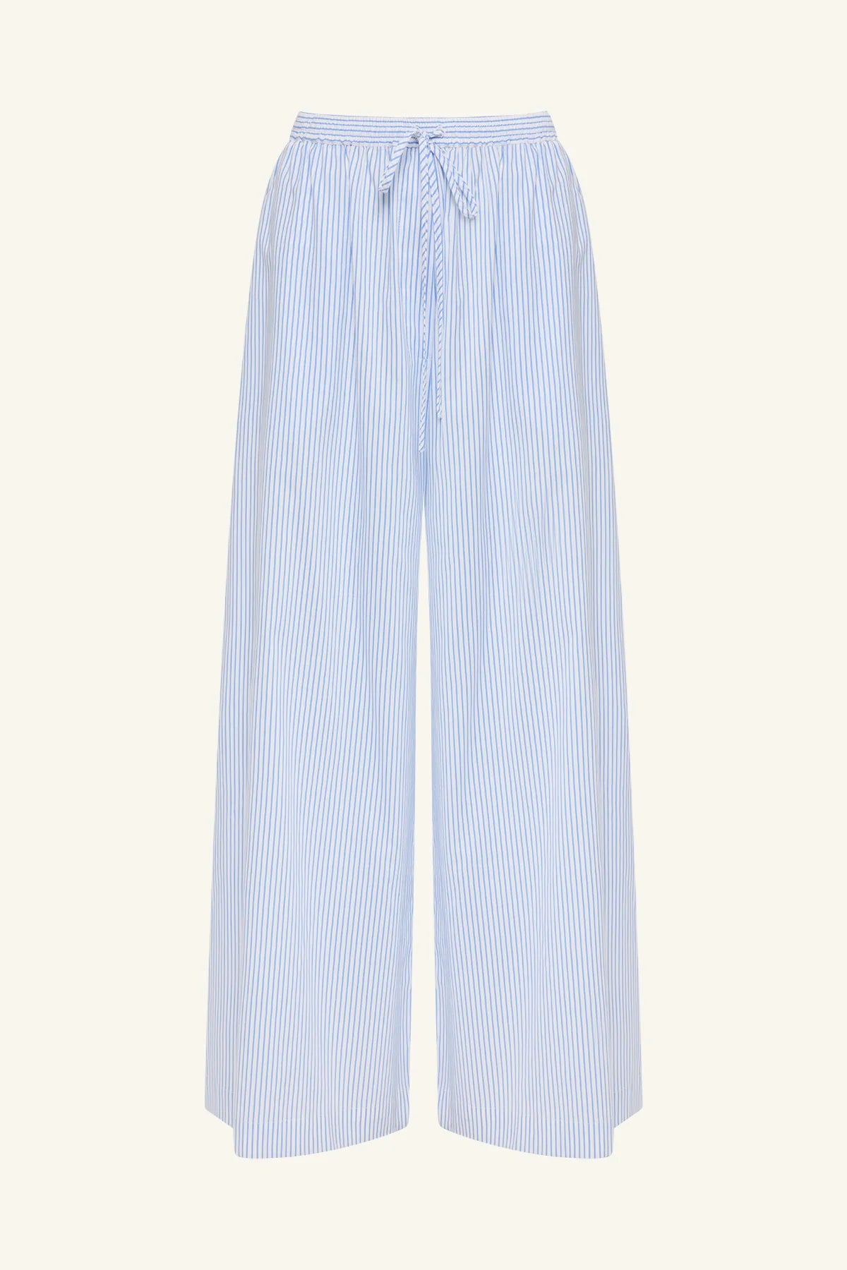 Wide leg pant in marine stripe in a soft cotton shirting.