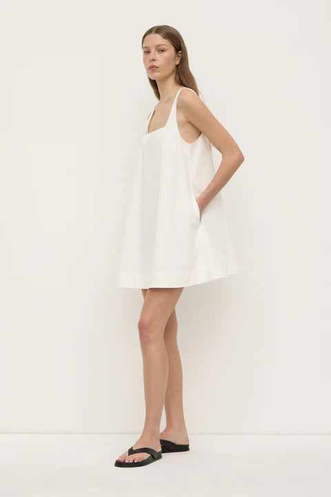 Cut in an A-line silhouette, this mini dress is crafted from a lightweight cotton poplin and features a square scoop front and side pockets for added utility.