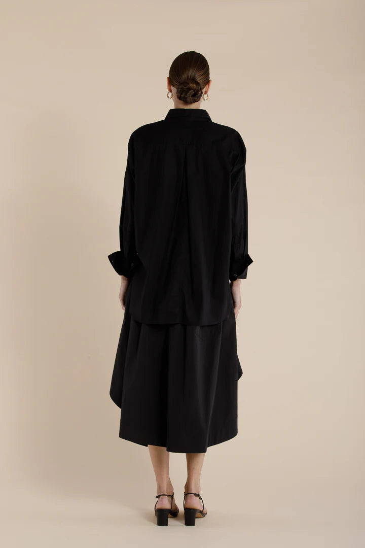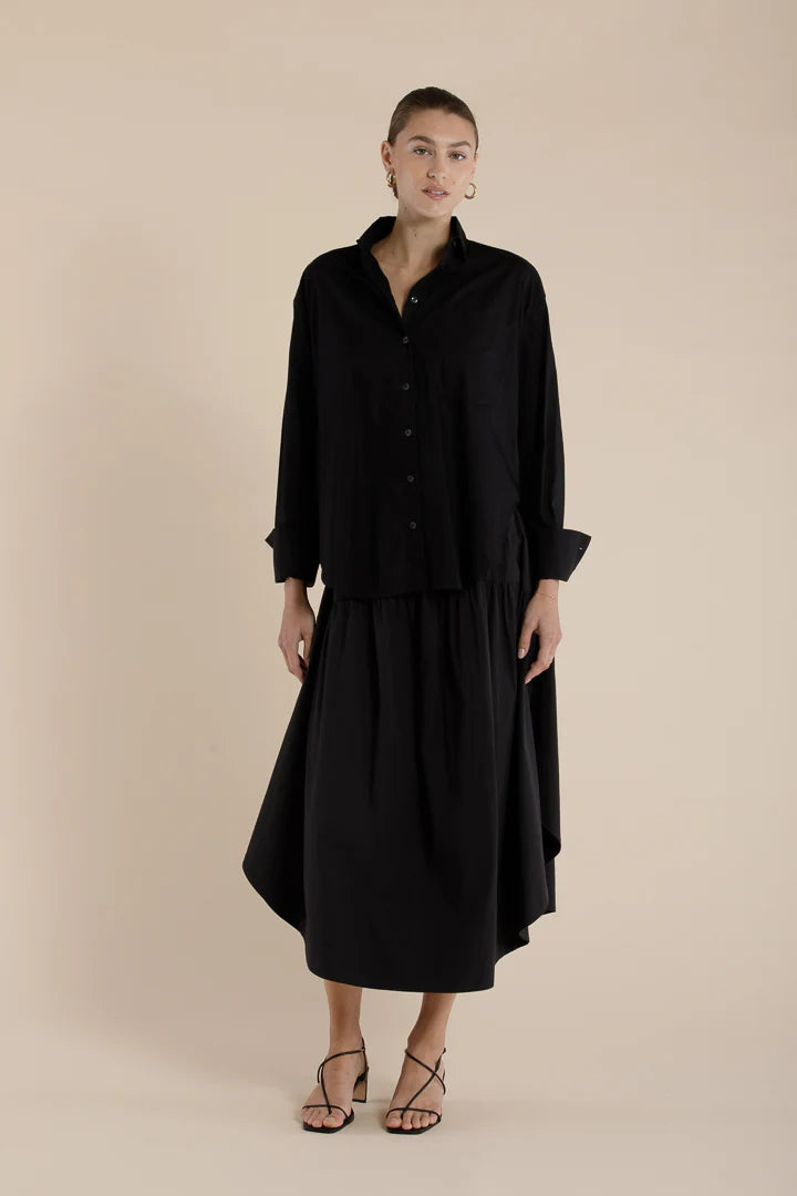A refined take on effortless dressing, The Sawyer Skirt is a pull-on, gathered circle skirt crafted from 100% cotton for a soft, breathable feel. The elasticated waistband ensures a comfortable fit, while the gathered yoke detail at the front and back creates soft volume. A circular hem, finished with wide facings, enhances the skirt’s fluid silhouette. Thoughtfully designed with both side-entry pockets and low back patch pockets, merging practicality with considered design.