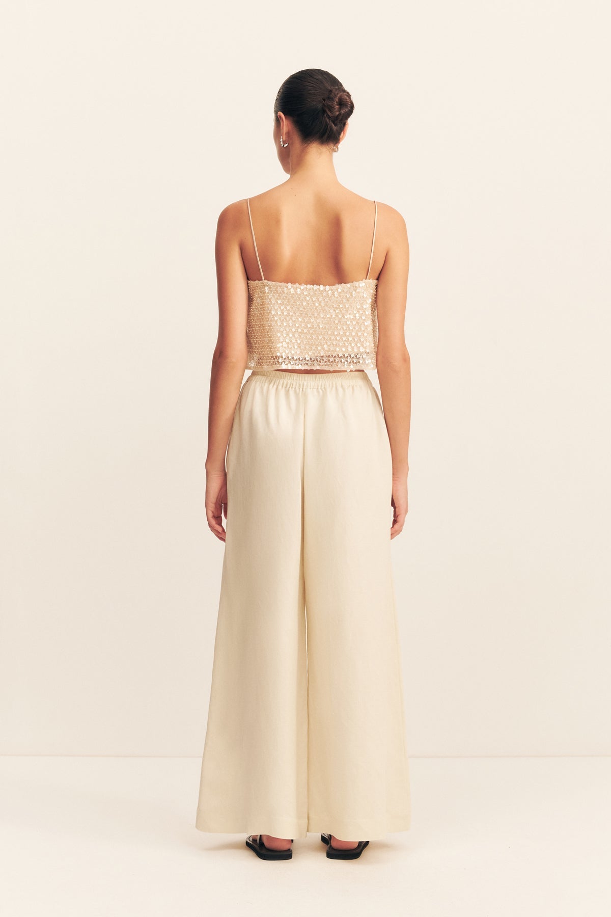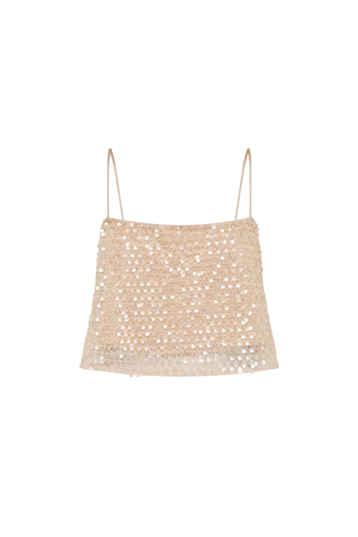Cropped cami in a macadamia sequin and bead embellished mesh.