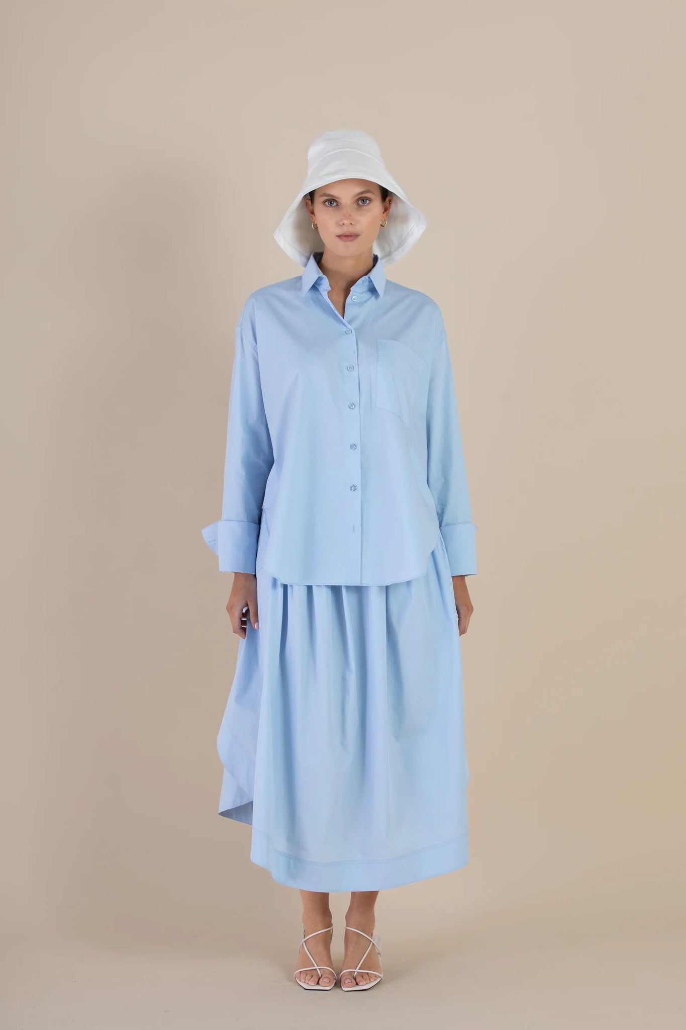 Defined as relaxed precision, The Ida Shirt is a long sleeve essential crafted in a classic SELFE silhouette — tailored with intention, worn with ease. Featuring a relaxed fit with a single front pocket, back pleat detail, and traditional shirting elements: structured collar, back yoke, and button-through placket. The stepped, scooped hemline and fine finishing lend a refined touch. Designed for effortless wear from daily rituals to evening moments, across all seasons.