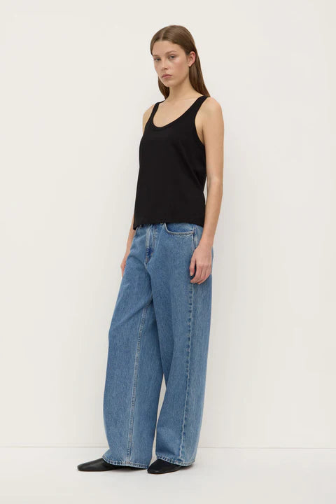 Crafted from a super-soft cotton jersey, this tank offers a relaxed fit on the body, featuring a ribbed scoop neckline and armholes.